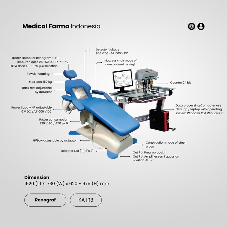 Medical Farma Indonesia menghadirkan Renograf KA IR3, alat pemeriksaan fungsi ginjal digital canggih yang membantu mendeteksi penurunan fungsi ginjal sedini mungkin. Pencegahan dini dan penanganan yang tepat dapat membantu mencegah perkembangan kondisi kronis.
